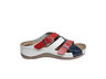 Lady’s anatomic SOFT clogs,leather, combination of white, blue and red colour, lightweight polyurethane antistress sole, 5 cm high